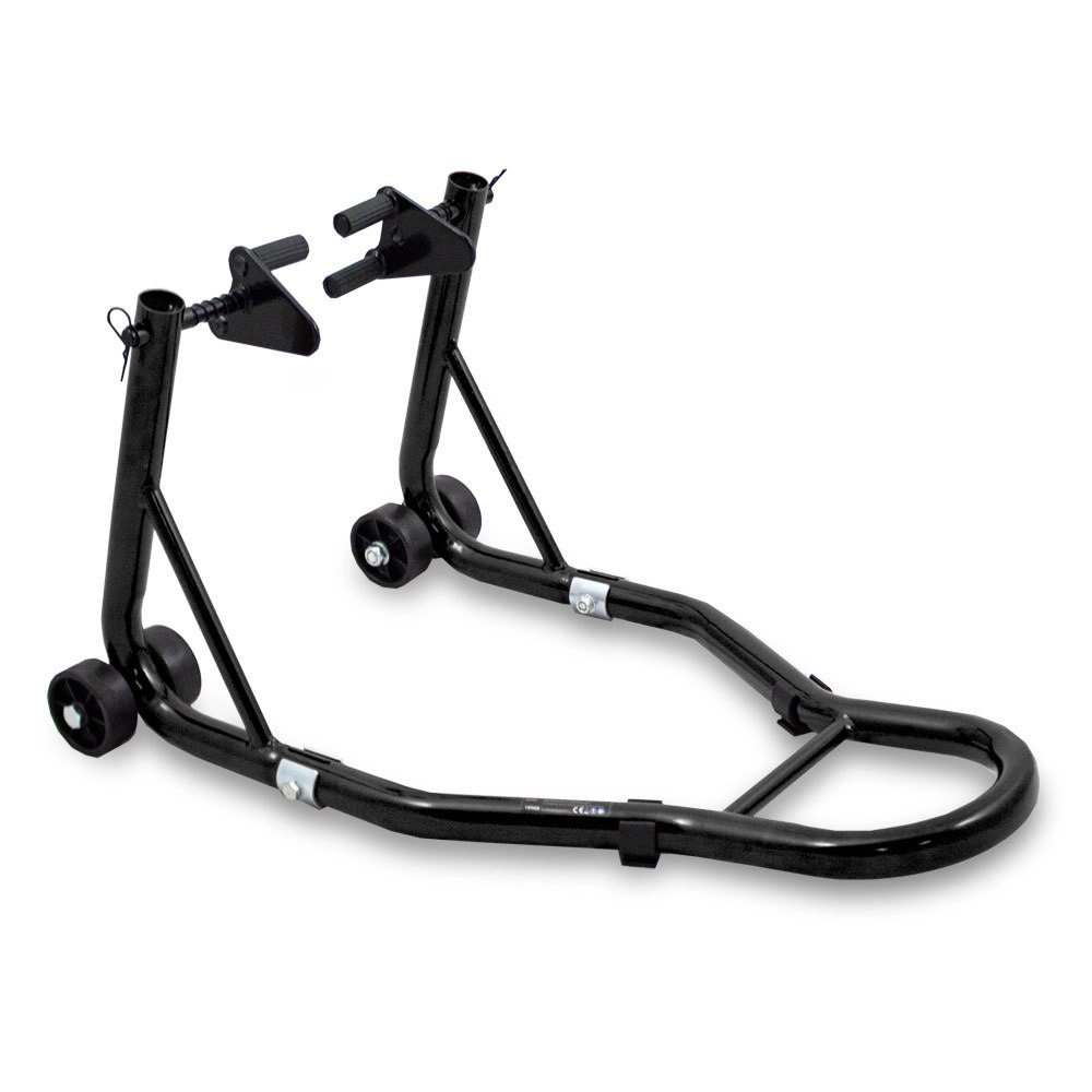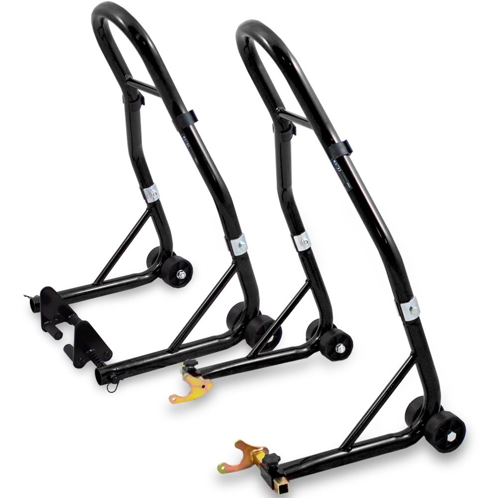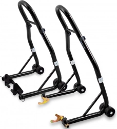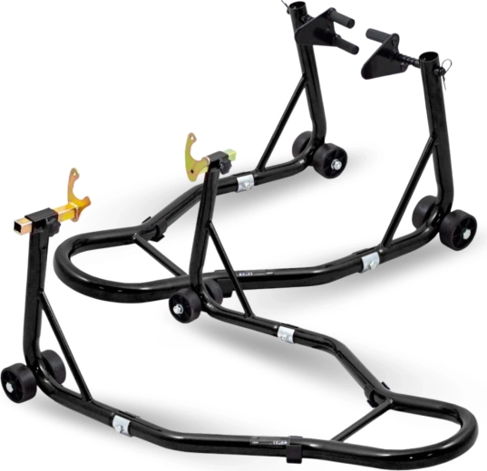 Ez az univerzális állványkészlet ideális a mindennapi karbantartáshoz, lánctisztításhoz, kerékcseréhez és a motorkerékpár hosszú távú tárolásához. A masszív acélszerkezetnek és a gondosan tervezett geometriának köszönhetően maximális stabilitást és biztonságos alátámasztást nyújt minden művelet során a garázsban és a műhelyben.