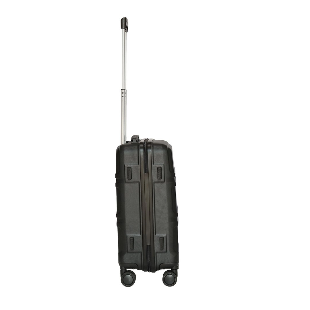 Az elegáns BARUT utazószett egy fedélzeti bőröndöt 4 dupla kerékkel és egy praktikus kozmetikai táskát tartalmaz. A strapabíró ABS anyag védi az ütődésektől és karcoktól, a teleszkópos, rögzíthető fogantyú megkönnyíti a kezelést, a modern fekete dizájn pedig bármely utazáshoz illik.