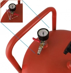 A futómű 2 fix kerékkel és 2 forgó görgővel könnyű manőverezést tesz lehetővé a műhelyben. A masszív acéltartály, az áttekinthető kezelőszervek és a biztonsági túlnyomás-szelep mindennapos használat mellett is biztonságot és hosszú élettartamot nyújtanak.