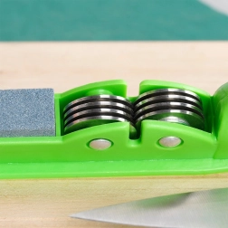 Egyszerűen húzza át a pengét a vájatokon – az élezés gyors, kényelmes, és kis helyen is elvégezhető.