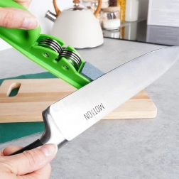 Az élező sokoldalú a szokásos rozsdamentes acél konyhakésekhez (pl. szakácskés), és kompakt méreteinek köszönhetően fiókban is könnyen tárolható. Nem alkalmas fogazott és kerámia késekhez.