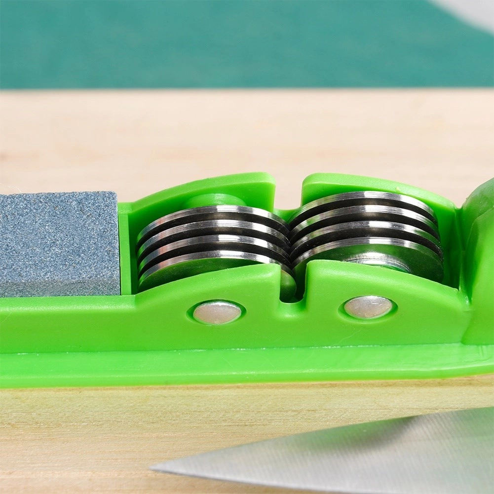 A fém csiszolókorongok visszaállítják az élét, az elülső kőfelület pedig kisimítja a tiszta, tépődésmentes vágásért.