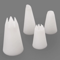 A négy újrahasználható műanyag csőrcsúcs lehetővé teszi a krém különféle formáinak és textúráinak készítését – a finom csillagoktól a markáns szegélyekig.