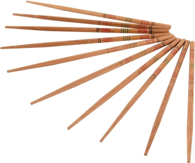 Stílusos bambusz evőpálcikák sushihoz 22,5 cm hosszban, 10 darabos (5 pár) csomagolásban az ázsiai ételek kényelmes tálalásához. Könnyűek, tartósak és kézre állnak, díszített felülettel és impregnált fával, amely nem szívja magába a nedvességet és a szagokat. Ideális sushihoz, ramenhez, tésztákhoz és tekercsekhez, a finom falatok pontos megfogásához.