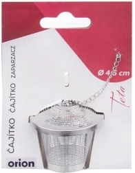 Praktikus rozsdamentes acél teaszűrő szálas teához és gyógynövényekhez, 4,5 cm átmérővel, függesztő lánccal és kampóval. Kiváló minőségű rozsdamentes acélból, mosogatógépben mosható. Finom szövésű háló minden levelet felfog, a biztonságos záródás pedig megakadályozza a tartalom kiszóródását. Sokoldalúan használható bögréhez, pohárhoz és teáskannához is.
