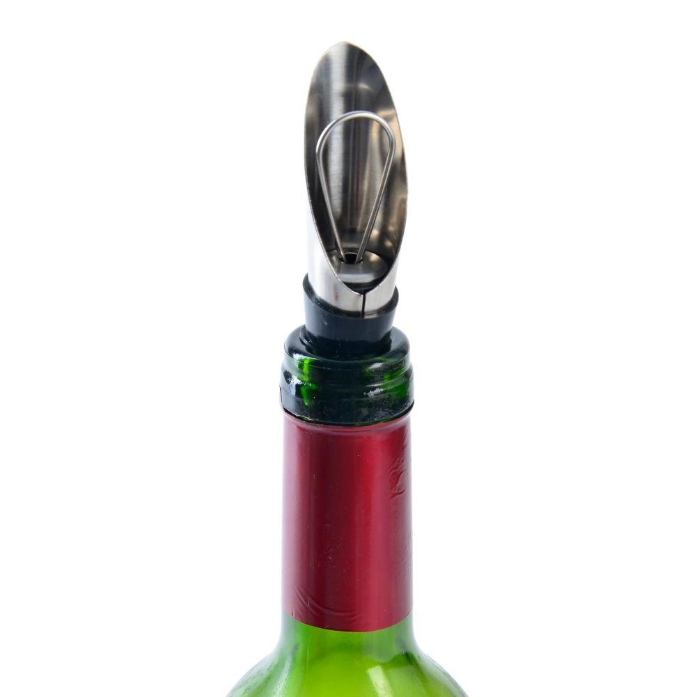 A szűkülő rozsdamentes kiöntő szoros gyűrűvel megakadályozza a csepegést, és minden felszolgáláskor tisztán tartja a palack nyakát és a terítőt.