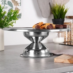 Ez a stabil talpú rozsdamentes tortaállvány professzionális megjelenést és praktikus használatot hoz minden konyhába és ünnepi asztalra. A 33 cm-es átmérőnek köszönhetően kényelmesen elférnek rajta torták, piték és mini desszertek válogatása, míg a 13 cm-es magasság látványos prezentációt ad alkotásainak.