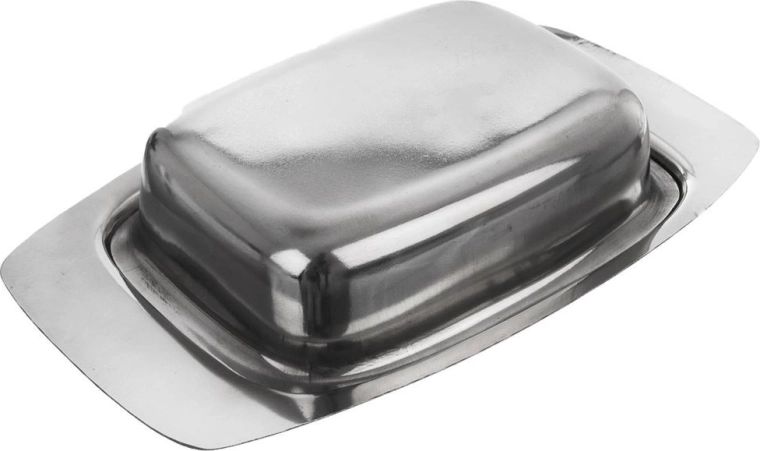 Ez a praktikus, rozsdamentes acél vajtartó ideális a vaj mindennapos tárolásához és tálalásához. Minimalista dizájnja remekül illik bármely konyhába és ünnepi terítékhez is. Masszív kivitele hosszú élettartamot és egyszerű karbantartást garantál.