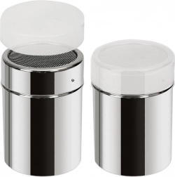 Ez a 300 ml űrtartalmú, 7 cm átmérőjű szóró minőségi rozsdamentes acélból készült, átlátszó műanyag tetővel kiegészítve. A sűrű szita precíz adagolást biztosít a finom, szórható alapanyagoknál csomósodás és rendetlenség nélkül. Remek segéd a desszertek, cappuccino vagy forró csokoládé díszítéséhez.