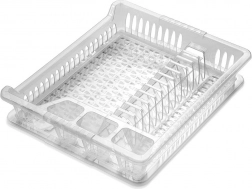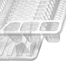 Az edényszárító tartós, félig áttetsző, fehér műanyagból készült. Könnyű, stabil és egyszerűen tisztítható. Időtálló dizájnja modern és klasszikus konyhákhoz egyaránt illik.