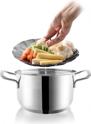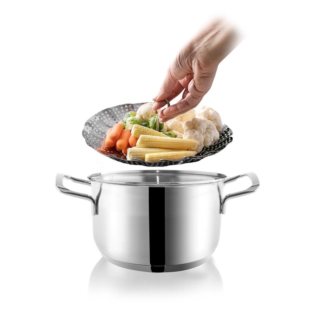 A minőségi rozsdamentes acélból készült, összecsukható pároló kíméletes gőzölést tesz lehetővé, amely során az ételek megőrzik ízüket, színüket és tápanyagaikat. A 14–23 cm között állítható átmérőnek köszönhetően különböző méretű fazekakkal kompatibilis, így zöldségtől a halakon át egészen a gombócokig mindent elkészíthet.