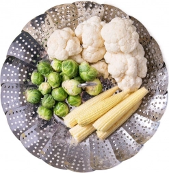 Az átgondolt, perforált „levelekkel” kialakított szerkezet egyenletes gőzkeringést biztosít, az ételek gyorsan, felesleges zsiradék nélkül készülnek el. Használat után a pároló könnyen összehajtható kompakt formára, így minimális helyet foglal a konyhában.