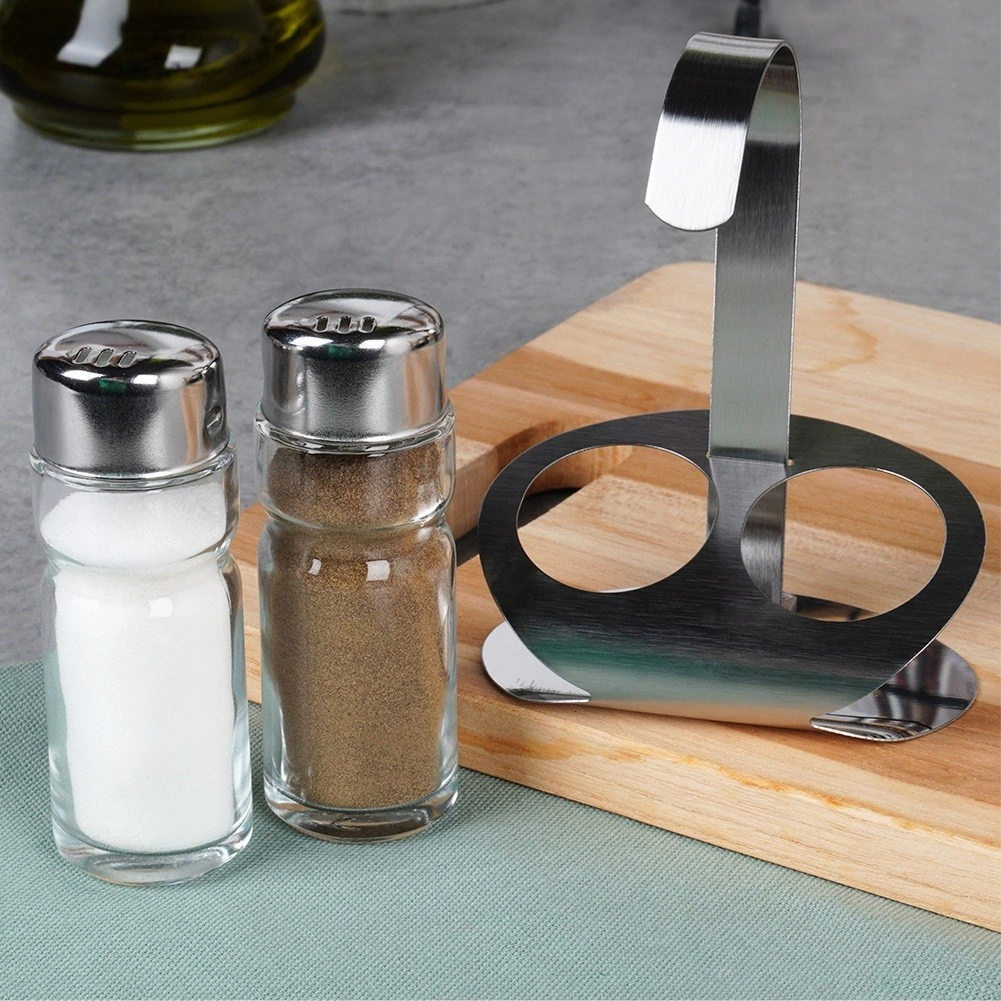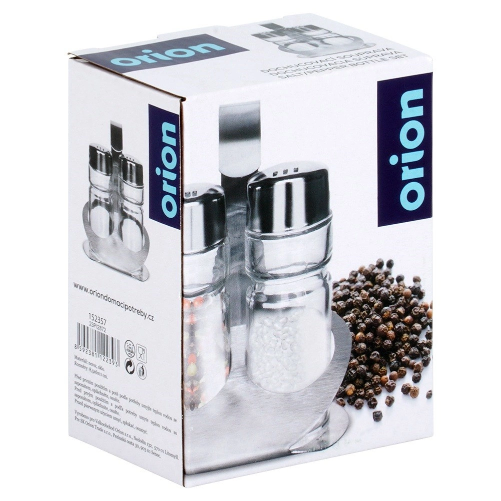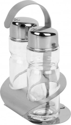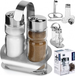 Elegáns, rozsdamentes acél állvánnyal ellátott kétfős sós- és borsszóró készlet, amely rendet és stílust visz minden asztalra. A üveg tartályok fém tetővel könnyen utántölthetők, jól kézben tarthatók, és az átlátszó testnek köszönhetően mindig ellenőrizhető a tartalom. Ideális otthonra és vendéglátásba egyaránt, könnyen tisztítható és hosszú élettartamú.