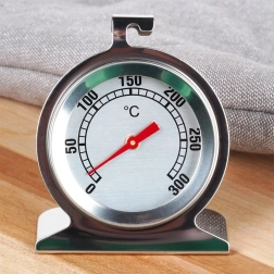 Az ORION acél sütőhőmérő segít a hőmérséklet ellenőrzésében a tökéletesen átsült pékárukhoz, húsokhoz és desszertekhez. A masszív rozsdamentes acél test és a hőálló üveg hosszú élettartamot és biztonságos használatot biztosít sütőben és füstölőben egyaránt. Az elhelyezés – tepsire állítva vagy rácsra akasztva – rugalmas, így a hőmérséklet mindig jól látható.