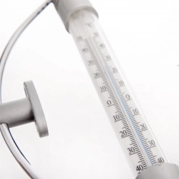 Praktikus kültéri hőmérő a hőmérséklet pontos nyomon követéséhez erkélyen, teraszon vagy a kertben. Jól olvasható skálát kínál -40 °C-tól +50 °C-ig, időjárásálló és könnyen szerelhető. A rozsdamentes acél modern, ezüst színű kivitele jól illik bármelyik kültéri környezetbe.