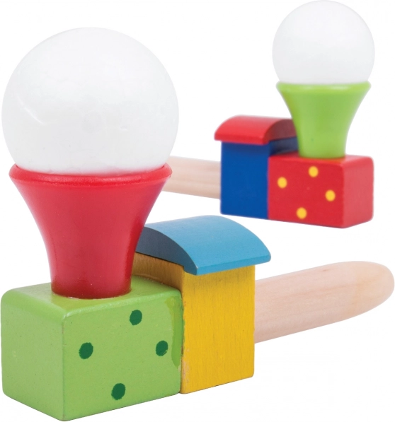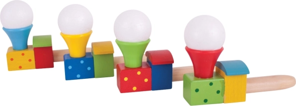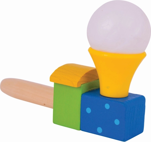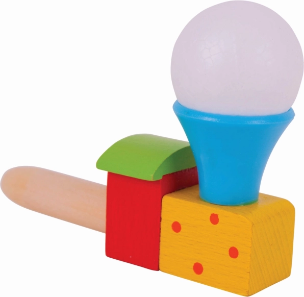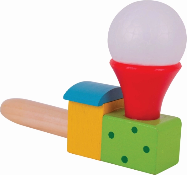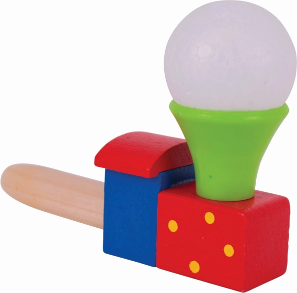 Ez a színes fa mozdony lufival a hétköznapi fújást kis csodává változtatja. A gyerekek gyakorolják és kontrollálják a légzésüket, figyelik, ahogy a fehér labda a kémény felett lebeg, miközben fejlődik a koordinációjuk és a türelmük. Ideális rövid, játékos szünetekhez és hosszabb, összpontosított szórakozáshoz is.