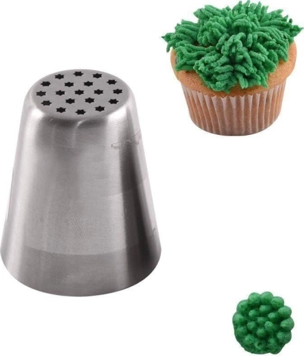 Univerzális orosz cukrászcső rozsdamentes acélból fű vagy haj hatású díszítéshez. Ideális tortákhoz, pitékhez és desszertekhez. Minőségi rozsdamentes acélból készült, varratmentes, tartós és élelmiszerbiztonságos. Könnyen tisztítható, mosogatógépben mosható, és minden habzsákhoz illeszkedik.