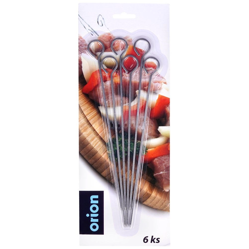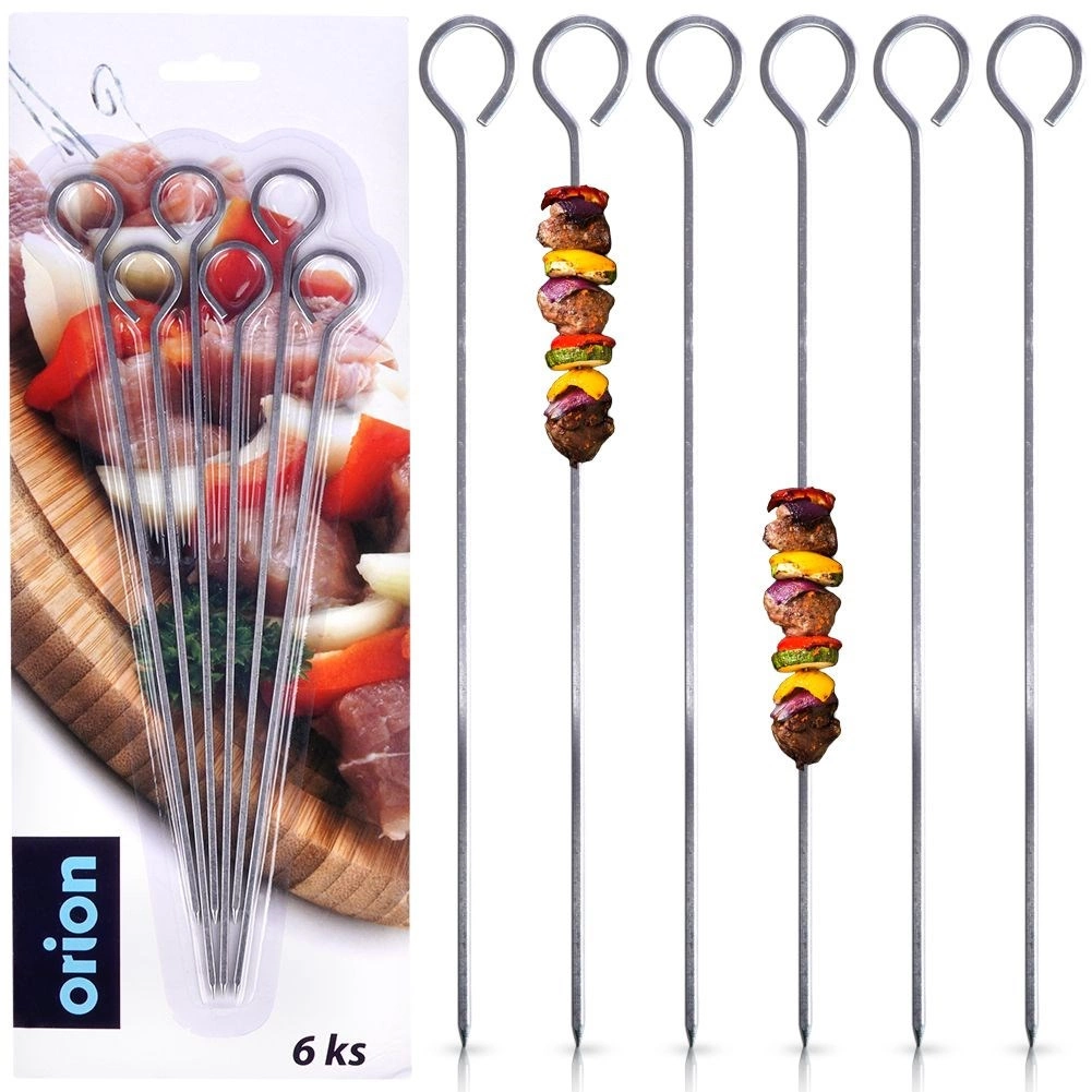 Praktikus hatdarabos acél nyárskészlet 23,5 cm hosszban grillhez és sütőben sütéshez. A lapos profil megakadályozza az alapanyagok elfordulását a nyárson, a rozsdamentes acél tartósságot és hosszú élettartamot biztosít, a fogantyús hurok pedig megkönnyíti a kezelést.