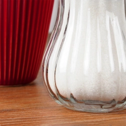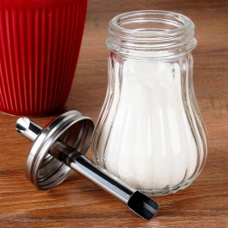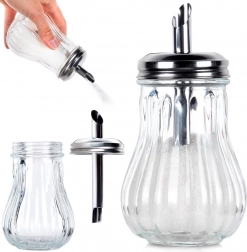Praktikus üveg cukortartó 190 ml-es adagolóval, amely egyetlen mozdulattal biztosítja a pontos cukoradagolást. Tartós, átlátszó üveggel, rozsdamentes, kiöntőcsőrös tetővel a kontrollált szóráshoz és bordázott testtel a biztos fogásért. Elegáns kiegészítő a konyhába és az étkezőasztalra is.