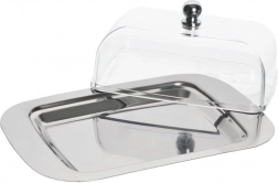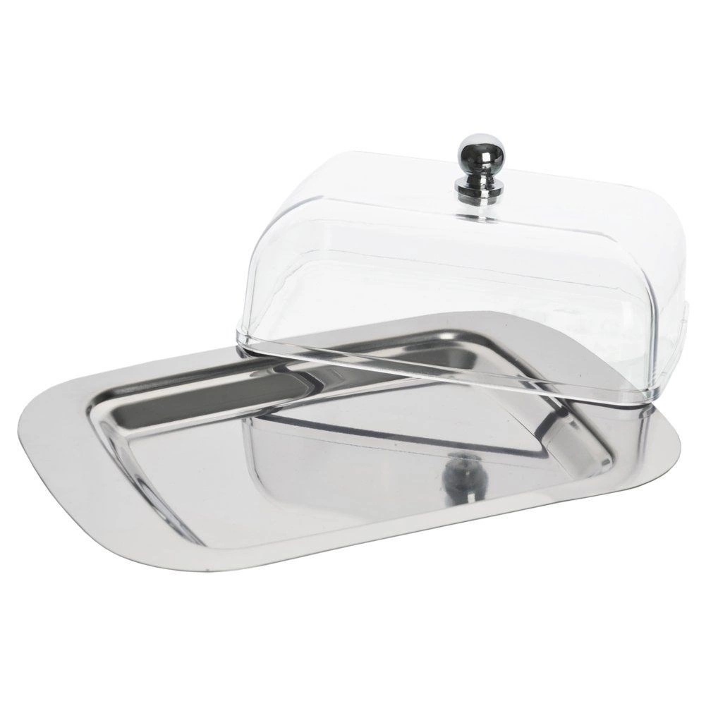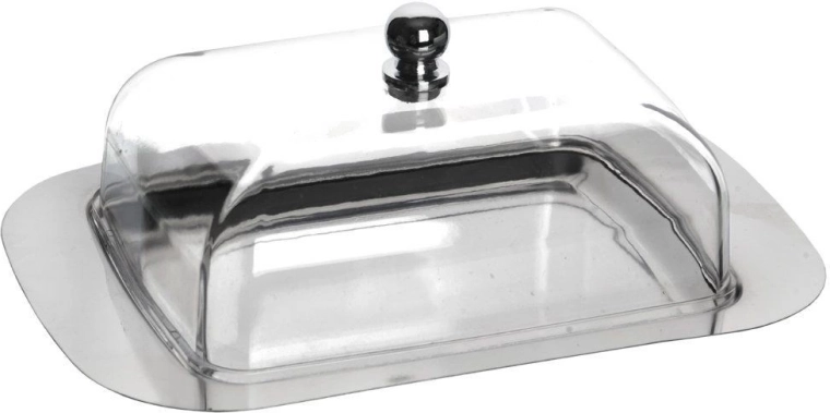 Ez a stílusos vajtartó ötvözi a tartós rozsdamentes alátétet a kristálytiszta kupolás fedéllel, amely megóvja a vajat a portól és a hűtőszagoktól, miközben azonnali rálátást biztosít a tartalomra. Időtálló dizájnja elegánsan kiegészíti a modern és a rusztikus terítést is.