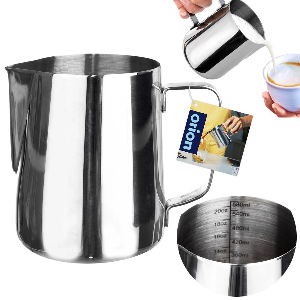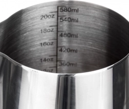 Stílusos és funkcionális segítőtárs baristáknak és kávérajongóknak. A kiöntő minőségi rozsdamentes acélból készült, könnyen tisztítható, korrózióálló és kiváló hővezető. A belső 60 ml-enkénti beosztások pontos tej- vagy tejszínmérést tesznek lehetővé a tökéletes cappuccinohoz vagy lattéhoz.