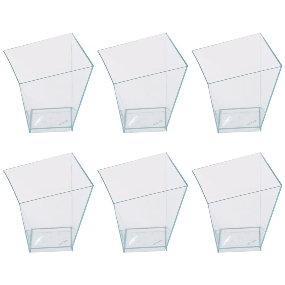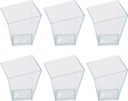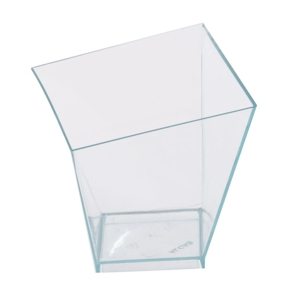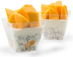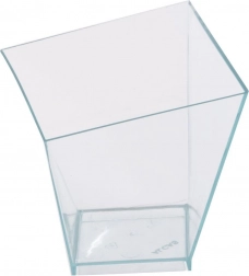 Elegáns, négyzet alakú poharak modern, ferdére vágott peremmel, melyekkel remekül tálalható a panna cotta, tiramisu, mousse, puding, saláták és sós tapasok. Az átlátszó falak látványosan megmutatják a rétegeket és a színeket, így kiválóan illenek édességpultokra és állófogadásokra.