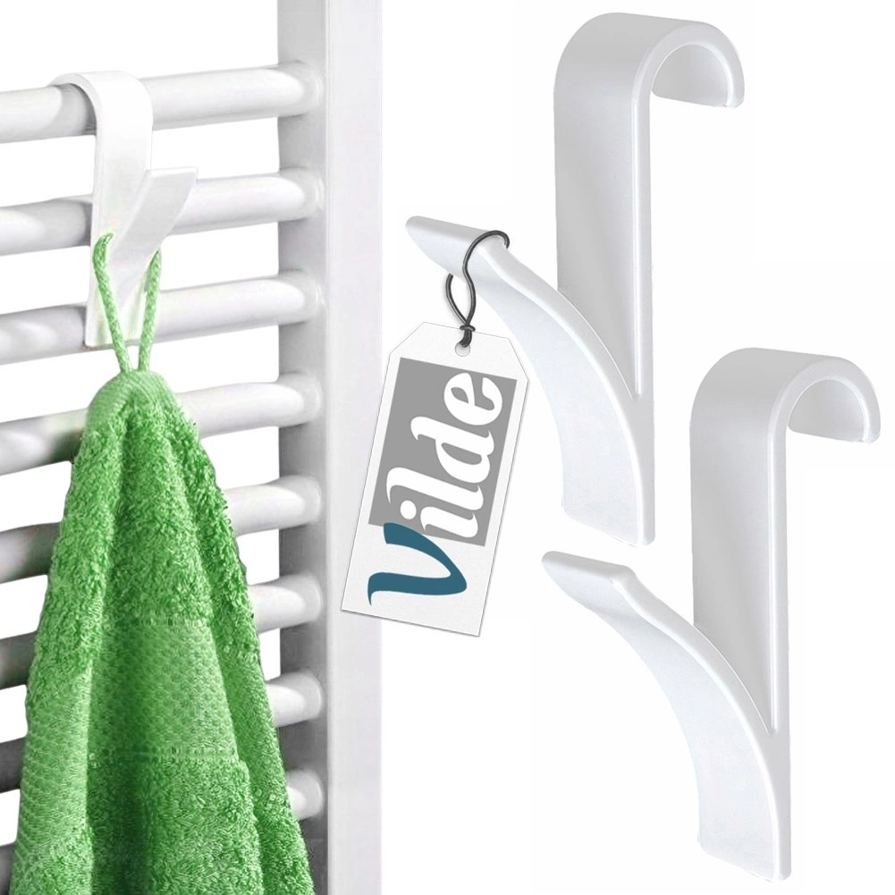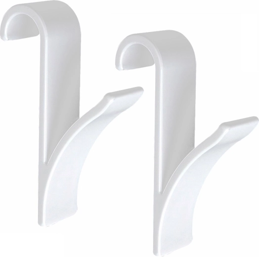 Praktikus, két darabos kampókészlet radiátorra vagy létra típusú fürdőszobai törölközőszárítóra a gyors szárításhoz és a helytakarékossághoz. Szerszám nélküli felszerelésnek köszönhetően egyszerűen felakaszthatók csövekre vagy 2,5 cm vastagságig az élre. Tartós, fehér műanyagból készült, ideális törölközőkhöz, köntösökhöz vagy konyharuhákhoz. Univerzális felhasználás a fürdőszobában, konyhában és előszobában, fúrás nélkül és a felületek sérülése nélkül, gyors telepítés és helytakarékosság minden háztartásban.