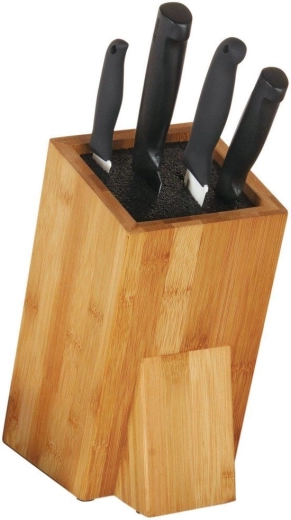 Praktikus és stílusos kiegészítő a konyhapultra, amely a késeket, ollót és egyéb eszközöket mindig kéznél és rendezetten tartja. A természetes bambusz tartós és időtálló megjelenésű, így remekül illik modern és klasszikus enteriőrökbe is. Az univerzális betét sűrű műanyag szálakkal biztonságosan rögzíti a különböző hosszúságú és szélességű pengéket.