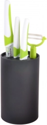 A kompakt, hengeres forma fekete színben helytakarékos a pulton, függőlegesen tartja az eszközöket, és jól illeszkedik modern és klasszikus konyhákhoz egyaránt.