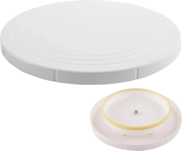 Az állvány csapágyon forog mindkét irányba, ami jelentősen megkönnyíti a torták és desszertek egyenletes díszítését.