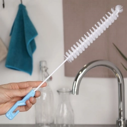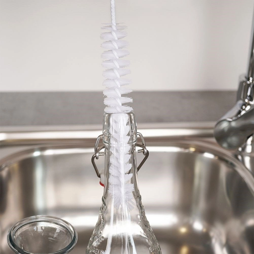 Ez a hosszú és keskeny kefe úgy lett tervezve, hogy erőfeszítés nélkül jusson be a szűk nyakú palackokba és edényekbe. A sűrű műanyag sörték hatékonyan távolítják el a lerakódásokat és szennyeződéseket a falakról és az aljáról, míg a strapabíró kivitel hosszú élettartamot biztosít. Ideális palackokhoz, vázákhoz, bébiüvegekhez, kancsókhoz és csövekhez.