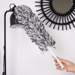 A masszív, műanyag nyél fehér színben remek fogást biztosít, és biztos tartást nyújt. A poliészter mikroszálas fej tartós és kíméletes az érzékeny felületekhez – alkalmas kijelzőkhöz, lakkozott felületekhez és dekorációkhoz. Takarítás után a praktikus akasztófülnél fogva egyszerűen felakasztható.