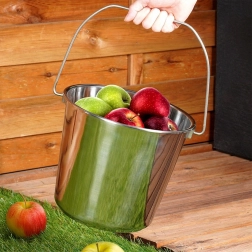 Sokoldalú felhasználás: gyümölcsszedésre, víz vagy tej szállítására, építkezésen való használatra, illetve dekoratív virágtartóként. A minőségi rozsdamentes acél védi a tartalmat és biztosítja a higiéniát tárolás és szállítás közben.