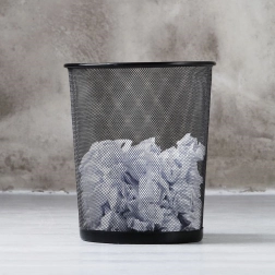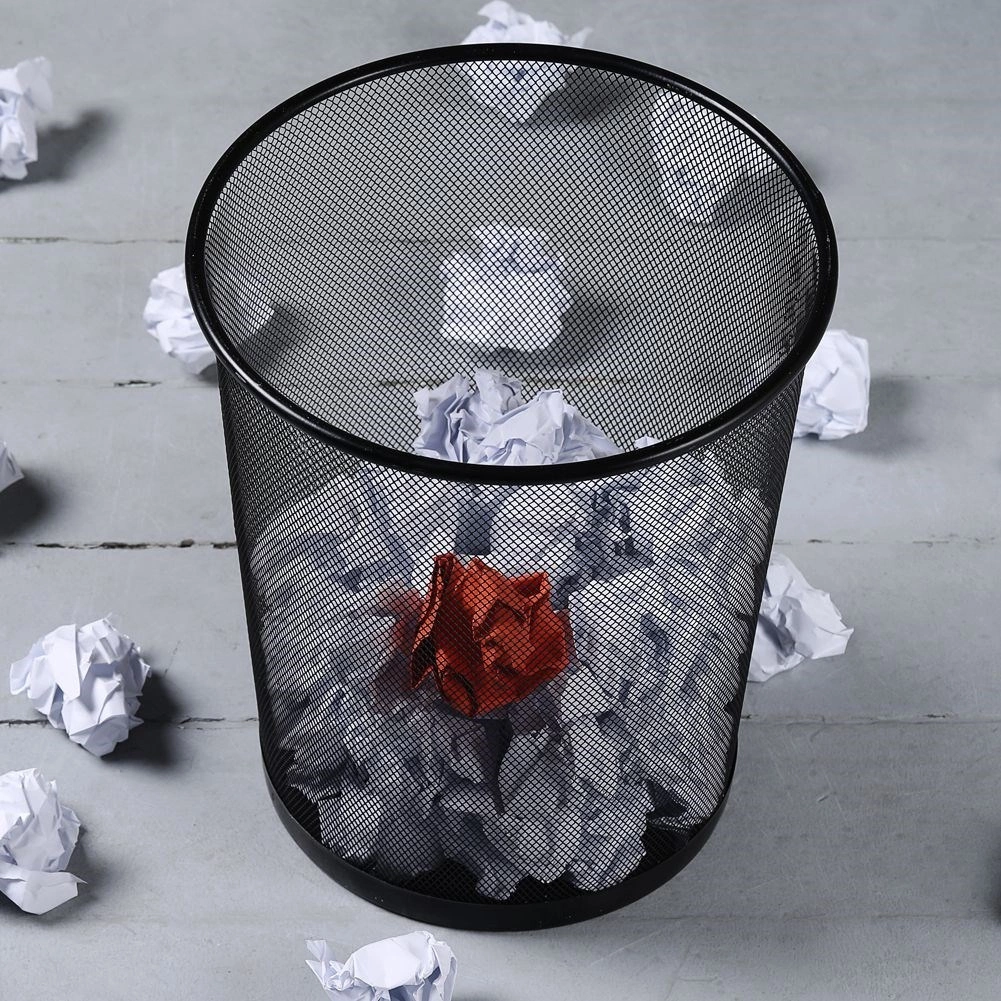 Praktikus fém szemetes 6 literes űrtartalommal, légáteresztő hálós kialakítással és tartós fém szerkezettel. Az elegáns fekete kivitelnek köszönhetően irodába, otthoni dolgozószobába és váróterembe is illik. Könnyű hordozni, egyszerű a tisztítása, és elfér szekrényben vagy az asztal alatt is.