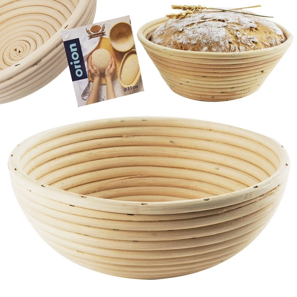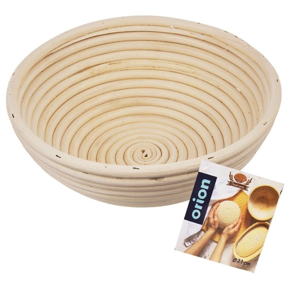 Kerek, 21 cm átmérőjű rattan kelesztőkosár házi kenyér tökéletes kelesztéséhez, akár 1,2 kg-os cipóig. Természetes, bézs színű rattanból, amely légáteresztő, könnyű szerkezetű, és a héjon dekoratív spirálmintát hoz létre. Ideális a stabil cipóforma, az egyenletes kelesztés és a tészta könnyű kiborítása érdekében.
