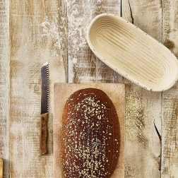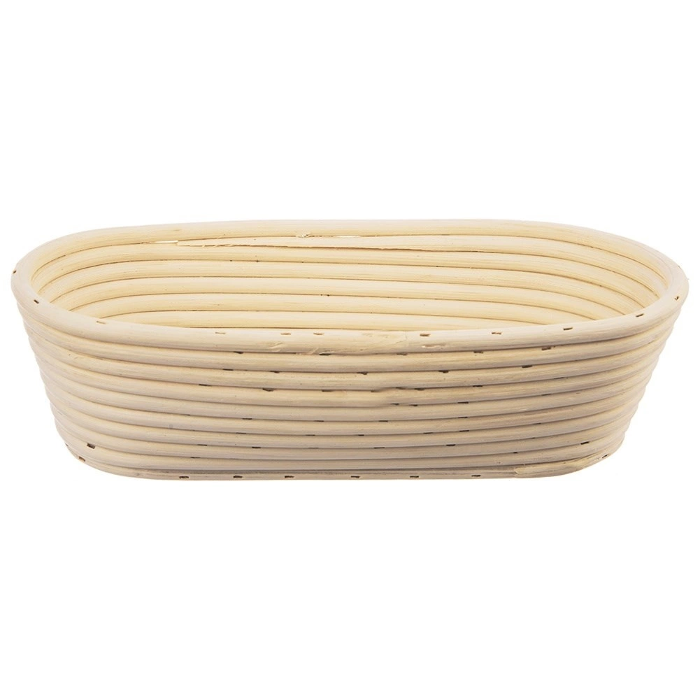 Az ovális alakú rattan kelesztőkosár nélkülözhetetlen segítőtárs a kenyértészta kelesztéséhez és a stílusos tálaláshoz. A természetesen légáteresztő anyag segít elvezetni a nedvességet, a tészta jobban tartja a formáját, sütés után pedig jellegzetes spirális bordázatot kap.