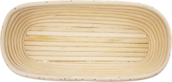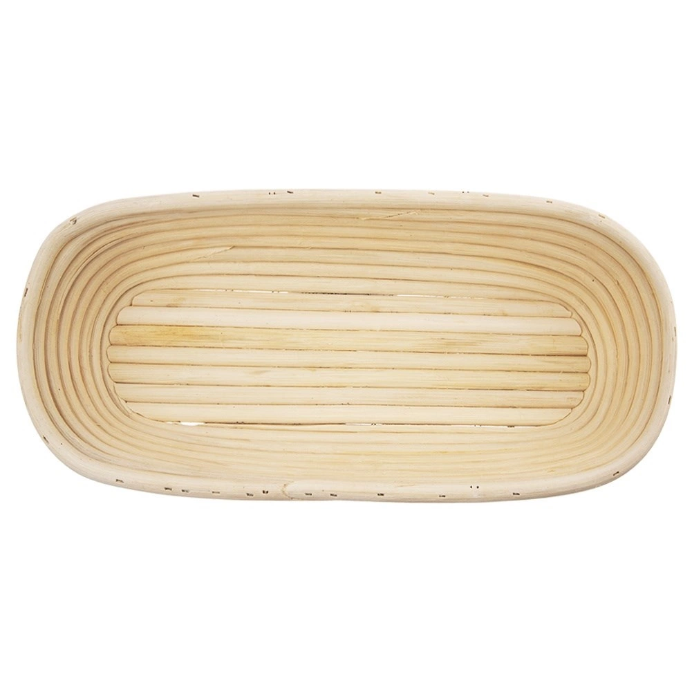 Ez a minőségi rattan kelesztő kosár, 26 × 13 × 9 cm-es méretben, ideális a kenyértészta formázásához és kelesztéséhez. A bézs színű természetes rattan biztosítja az egyenletes légáramlást, elvezeti a felesleges nedvességet, és szilárd szerkezetet ad a cipónak, amely kiborítás után nem terül szét.