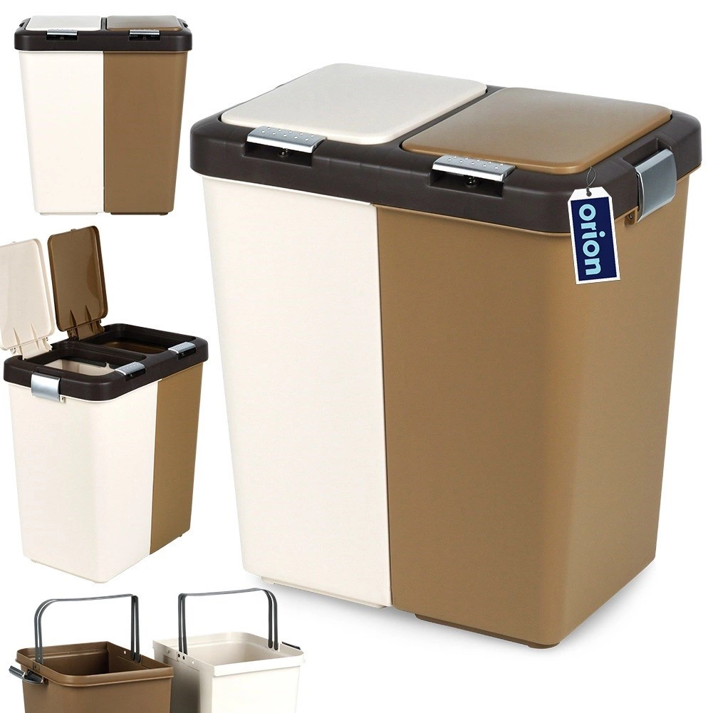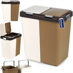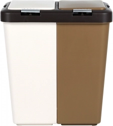 Praktikus műanyag szemetes két különálló kamrával, egyenként 2×20 l kapacitással, amely megkönnyíti a hulladék szelektálását otthon és irodában. Mindkét tartálynak saját fedele van gyors, kattintásos nyitással, így kényelmesen kidobhatja a hulladékot a teljes felső rész felemelése nélkül. A fehér–barna színű, strapabíró kivitel helytakarékos, és segít megőrizni a tisztaságot és a szagmentességet.