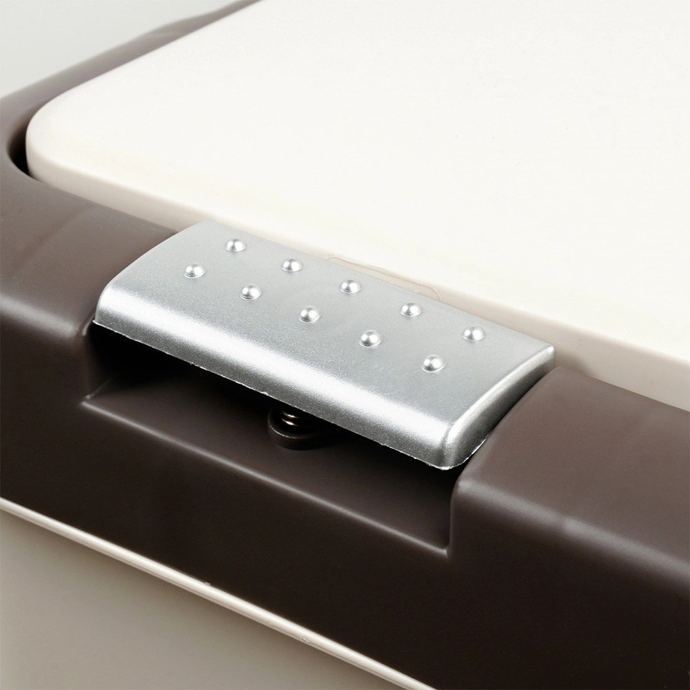 Minőségi műanyag fehér–barna kombinációban a mindennapos használathoz, míg a keskeny, téglalap alakú test helyet takarít meg kisebb helyiségekben is.