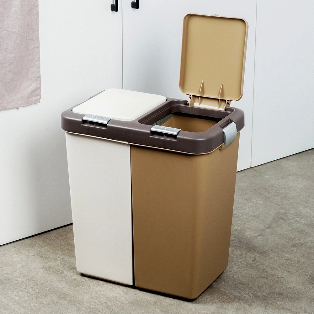 A szemetes minőségi, tartós műanyagból készült, időtálló fehér és barna kombinációban, így illik konyhába, irodába, váróba és dolgozószobába. A két kamra egy testben helytakarékos megoldás, amely kiváltja két külön szemetes helyigényét.