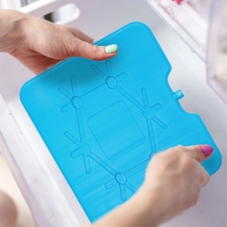 Lapos formája befér a fagyasztófiókokba és a szűkebb helyekre is. A betétet egyszerűen lefagyasztja, és bármikor újra felhasználja.