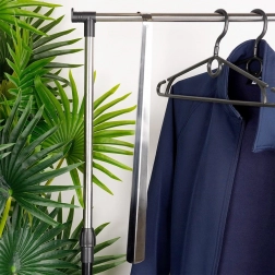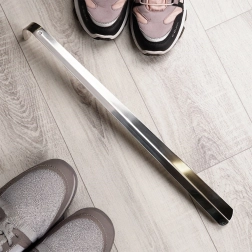 A masszív, rozsdamentes acél kivitel hosszú élettartamot, könnyű karbantartást és higiénikus használatot biztosít. A praktikus akasztónyílás segítségével a segédeszköz mindig kéznél lehet az előszobában, gardróbban vagy cipőboltban.