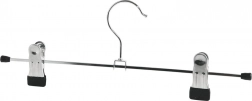 3 darabos fém vállfa szett csipeszekkel remek segítőtárs a gardrób rendszerezéséhez. A masszív fém kivitel elegáns ezüst színben, a fekete végekkel ellátott csipeszek pedig védik az anyagot a sérülésektől. A tolható csipeszeknek köszönhetően könnyedén a megfelelő távolságra állíthatja őket – a keskeny szoknyáktól a bő szárú nadrágokig.