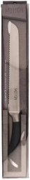 A MOTION kenyérvágó kés megbízható segítőtárs a mindennapi pékáru-szeleteléshez. A magas minőségű rozsdamentes acélból készült recés penge könnyedén megbirkózik a ropogós héjjal és a puha bélzettel is, tiszta és egyenes vágásokat biztosítva. Az ergonomikus, csúszásmentes markolat fekete színben kényelmes fogást nyújt, biztonságos és kényelmes használatot garantál.