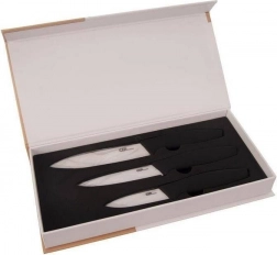 Ez az univerzális készlet egy kis, közepes és nagy kést tartalmaz a precíz szeleteléshez, daraboláshoz és hámozáshoz. A teljes kerámia penge sima vágást biztosít, az ételek kevésbé tapadnak rá, és jobban megőrzik vitamin- és tápanyagtartalmukat. A ergonomikus markolatoknak köszönhetően, amelyek minőségi fekete műanyagból készültek, a kések kényelmesen kézben tarthatók és nem csúsznak.
