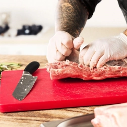 Kényelmes és biztonságos fogás még hosszabb szeletelés során is. A markolat formája biztos tartást és jobb irányítást nyújt a kés felett.