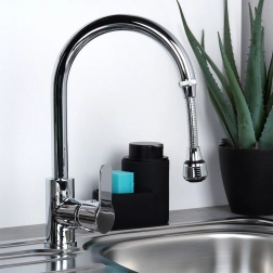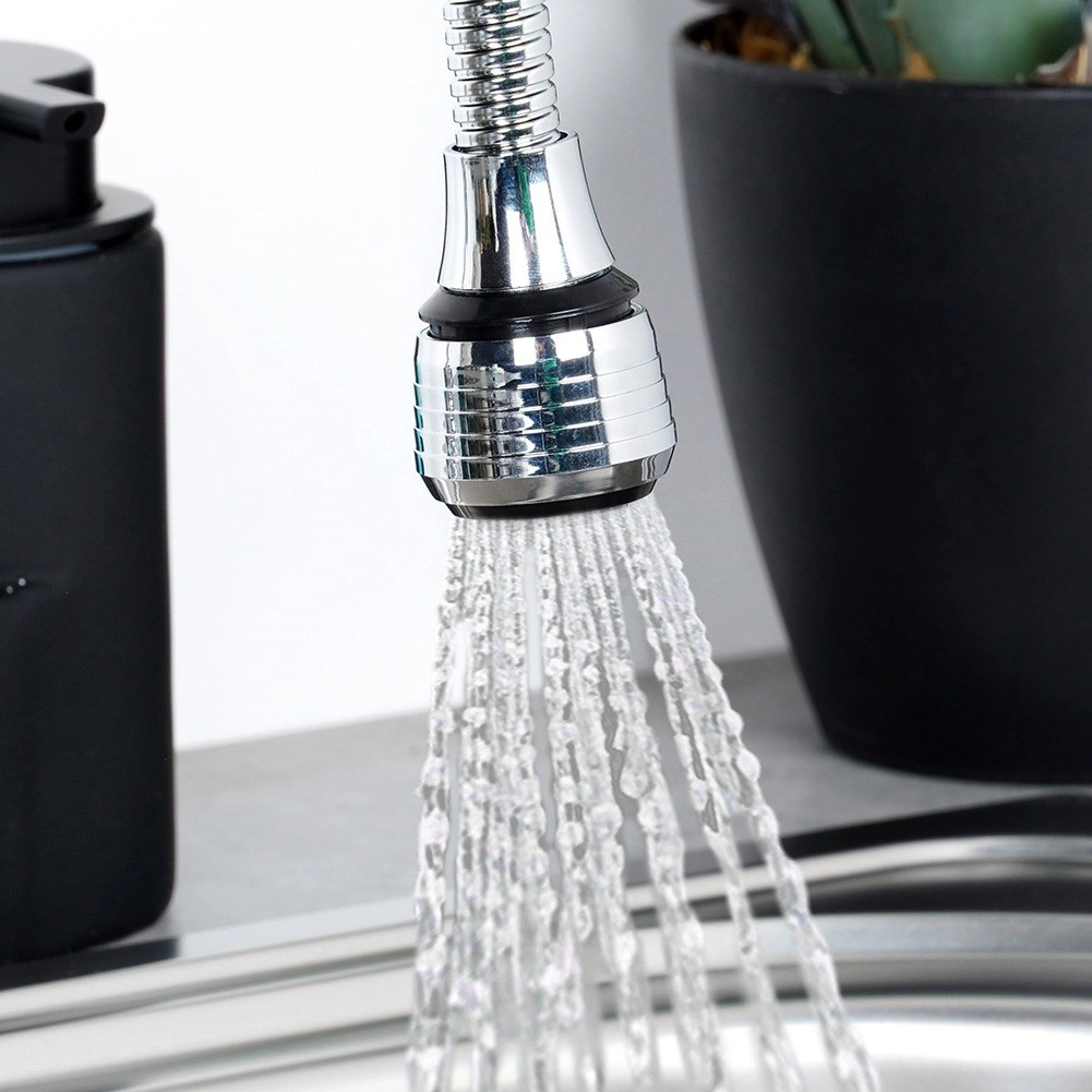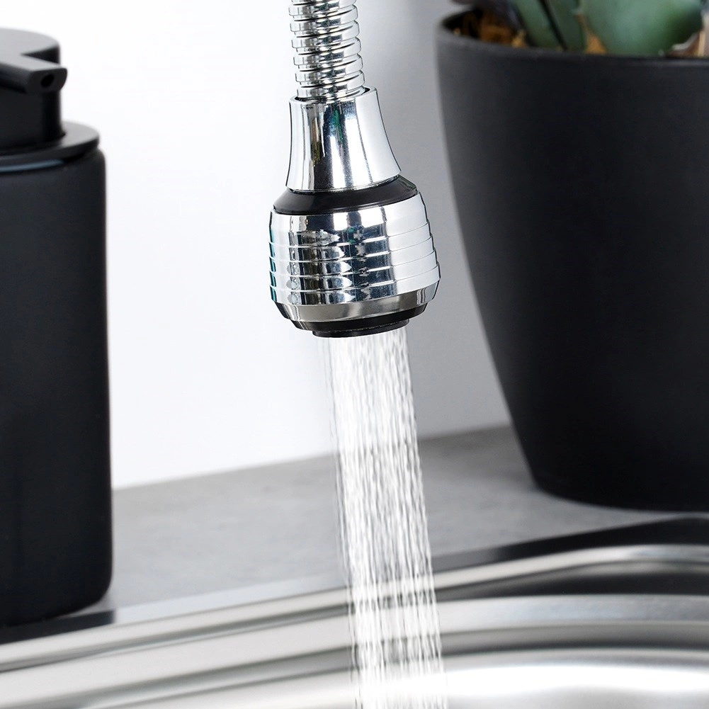 Takarékos és praktikus perlátor rugalmas nyakkal és 2 vízsugár-üzemmóddal (sugár/zuhany) mosogatóhoz és mosdókagylóhoz. Csökkenti a vízfogyasztást levegőztetésnek köszönhetően, illik a szabványos csaptelepekhez belső és külső menettel egyaránt, és tartós anyagokból készült elegáns ezüst-fekete kivitelben.