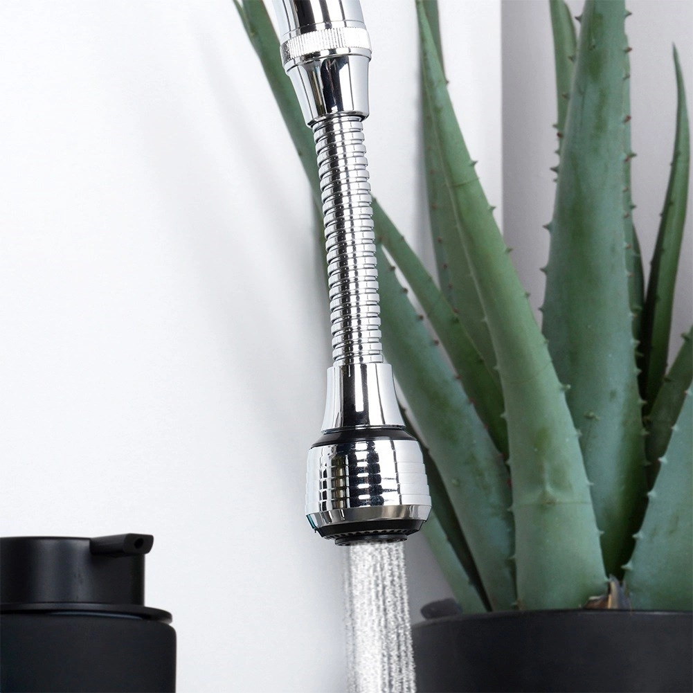 A rugalmas gégecső lehetővé teszi a pontos irányítást és mérsékli a fröcskölést. Az univerzális csatlakozás belső és külső menettel biztosítja a kompatibilitást a legtöbb szabványos csapteleppel. A tartós, ezüst-fekete kialakítás praktikus és könnyen tisztítható.