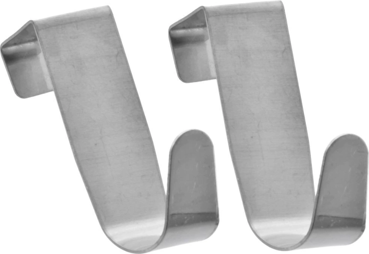 Praktikus, két darabból álló ajtóakasztó-készlet matt rozsdamentes acélból, ezüst színben. Ideális helytakarékos megoldás a fürdőszobában, a konyhában vagy az előszobában. Fúrás nélkül szerelhető – elég az ajtóra vagy a szekrényre akasztani. Minden akasztó mérete 2,5 × 7 cm, és legfeljebb 2 cm vastag ajtókhoz alkalmas. Tartós, sokoldalú és könnyen használható törölközőkhöz, köntösökhöz, konyharuhákhoz vagy ruhákhoz.