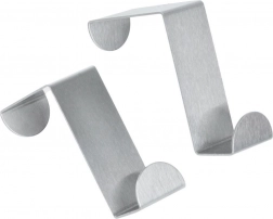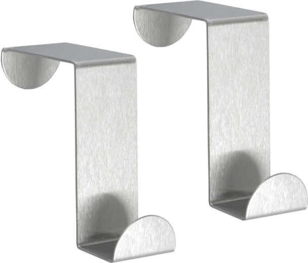 Praktikus, matt rozsdamentes acélból készült, ezüst színű ajtóhorog-készlet két darabban, amely fúrás nélkül gyorsan bővíti a tárolóhelyet. Alkalmas törölközők, köntösök, táskák vagy konyhai eszközök számára. Minden horog mérete 6 × 2,5 cm, és legfeljebb 4 cm vastag ajtókhoz illeszkedik. A felszerelés szerszám nélkül történik, a kivitel tartós rozsdamentes acél, a felhasználás pedig sokoldalú a fürdőszobában, konyhában, előszobában és hálószobában.
